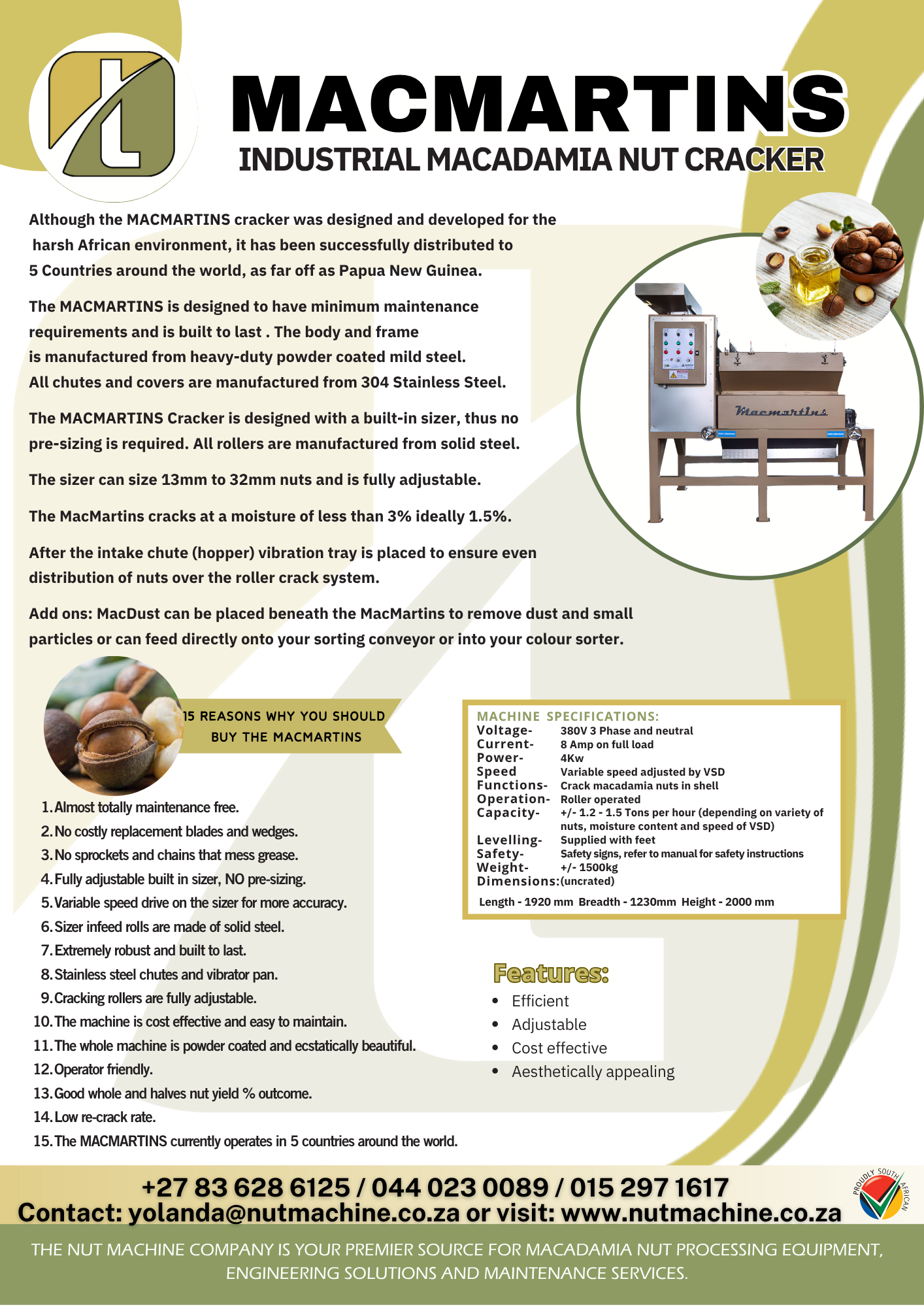 MACMARTINS SPECIFICATIONS: